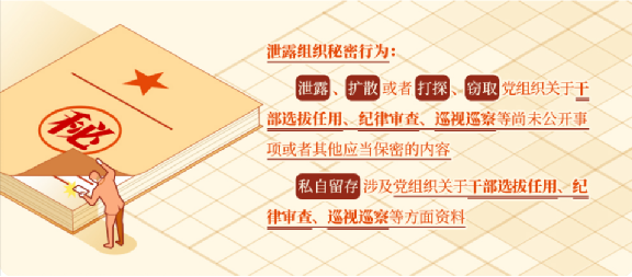 “严守党的纪律,保守党的秘密”,是每名党员入党宣誓时的郑重承诺。无论选人用人工作、纪律审查工作,还是巡视巡察等工作,都有严格的保密纪律。《党政领导干部选拔任用工作条例》规定,选拔任用党政领导干部,不准私自泄露研判、动议、民主推荐、民主测评、考察、酝酿、讨论决定干部等有关情况。《中国共产党纪律检查机关监督执纪工作规则》规定,监督执纪人员不准私自留存问题线索和涉案资料,严禁泄露审查调查工作情况,对纪检干部私存线索、跑风漏气、违反安全保密规定等违纪行为要严肃处理。《中国共产党巡视工作条例》规定,巡视工作人员私自留存巡视工作资料,泄露与巡视工作有关的未公开信息的,要给予处理处分。党员干部必须充分认识保守党的秘密的极端重要性和自身肩负的保密责任,对组织尚未公开的事项守口如瓶,自觉筑牢保密防线。