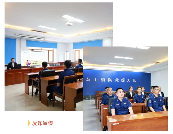 6月21日下午,鹤岗市区联社工作人员首先来到南山消防救援大队,听取了侯震杰教官对特种防护装备、救援器材的功能介绍,对消防救援工作有了一定程度的了解。随后,鹤岗市区联社工作人员为指战员讲解反诈金融知识,提示网络电信诈骗的常见套路,并与指战员现场互动,帮助指战员提升应对防范网络电信诈骗的能力。