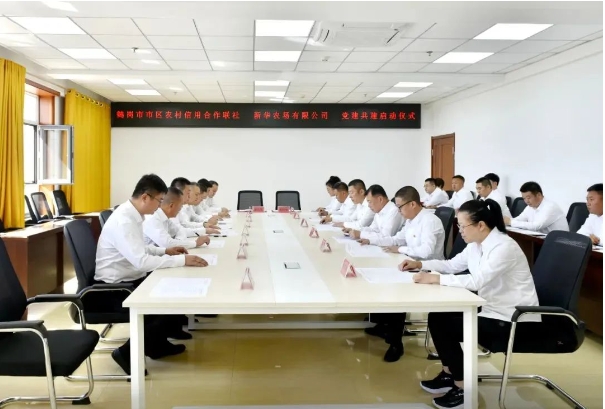 为深入贯彻落实党的二十届三中全会精神,进一步推动乡村振兴发展,9月10日上午,鹤岗市市区农村信用合作联社与新华农场有限公司在新华农场举行党建共建启动仪式。鹤岗市区联社党委书记、理事长张岩松,党委副书记孙福兴,党委委员蔡连和,新华农场有限公司党委副书记黄啟军,纪委书记苏兴刚,新华分公司副总经理王本栋,财务总监张礼海等出席启动仪式。