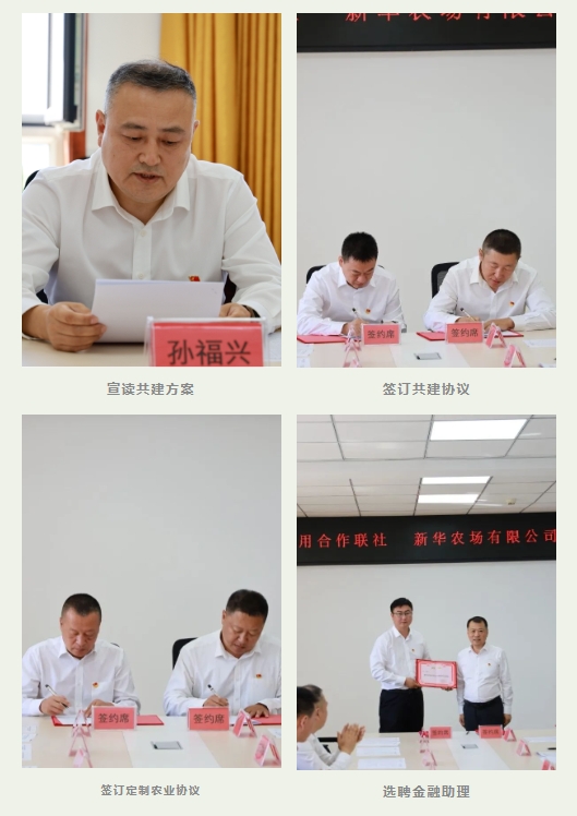 会上,鹤岗市区联社党委副书记孙福兴宣读“党建共建”工作方案,在全体与会人员的见证下,双方签订“党建共建”协议和“生活有点田”定制农业协议,并在现场举行“金融助理”聘任仪式,随后双方到新华农场青山管理区共同为“生活有点田”定制农业基地揭牌。协议书的签订,标志着双方党建共建合作关系的正式确立,为双方未来的深入合作与交流奠定了坚实基础。受聘的“金融助理”将深入场部及各管理区营销走访,主动对接各类经营主体,持续开展“规模种植户贷款”和“农业产业链贷款”,提供种植、加工、仓储、销售全方位资金支持,助力新华农场有限公司农业全产业链发展,为乡村振兴贡献农信力量。