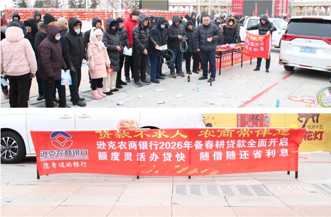 2月25日,利用新春大集契机通过现场设置免费套圈赠礼环节吸引人流,宣传备春耕贷款政策,推广存款产品,普及反假币、防诈骗等金融知识,将金融服务送到百姓身边。