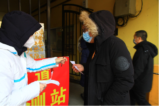 志愿者们有的维持秩序,有的帮助居民填写资料,他们不畏严寒,坚守在各自岗位,配合医务人员进行核酸检测,在疫情防控的第一线上将农信系统“滴水藏海”的精神继续发扬。