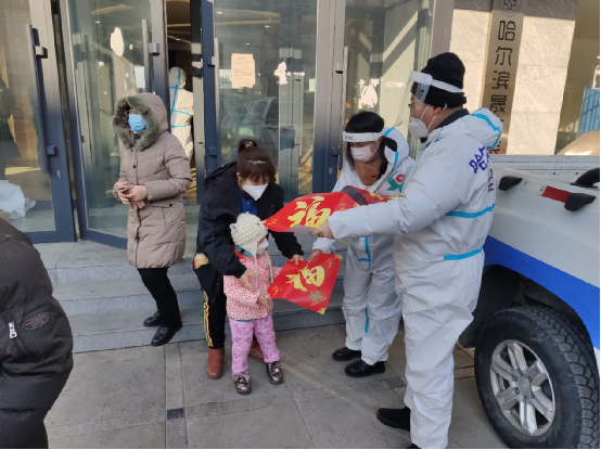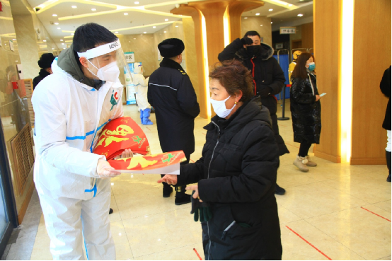 哈尔滨农商银行准备了上万个福字,为前来检测核酸的群众居民送上新春的祝福,感谢他们为疫情防控所做的贡献,同时也希望他们一如既往地支持哈尔滨农商银行的发展。我们将一路相伴,共度疫情难关。