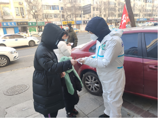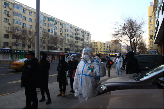 2月9日,哈农商疫情防控志愿突击队再次集结,协助医护人员为道里区部分居民进行第三次核酸检测。志愿者们身穿防护服,头戴防护面罩,配备口罩手套鞋套等防护用品,奔赴防疫一线,开展志愿服务。